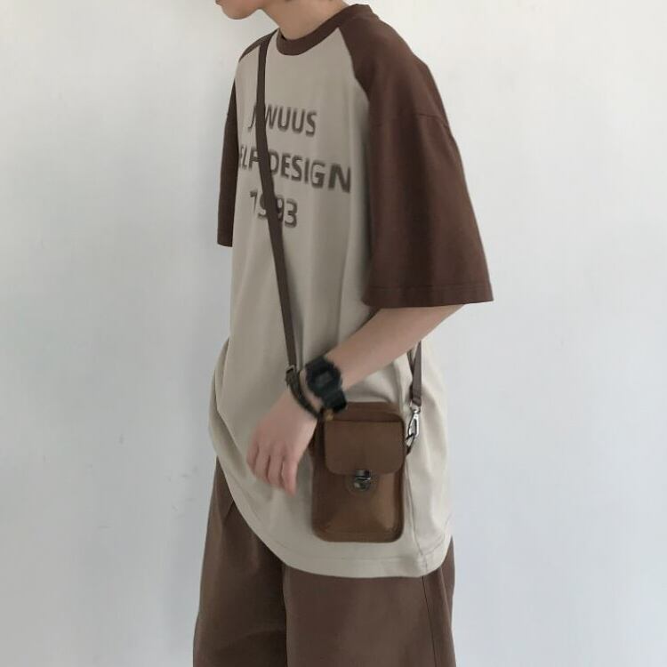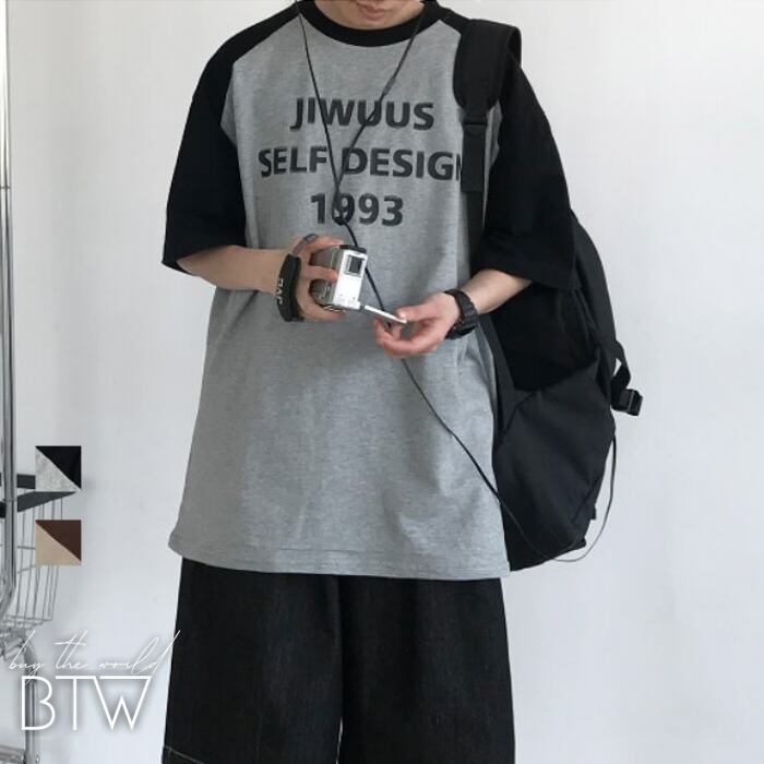 【韓国メンズファッション】ロゴプリントラグランTシャツ 半袖 シンプル カジュアル ゆったり ユニセックス BW2188