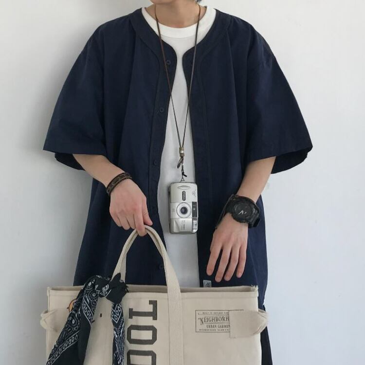 【韓国メンズファッション】ワントーンベースボールシャツ 半袖 ゆったり アメカジ レイヤード BW2190
