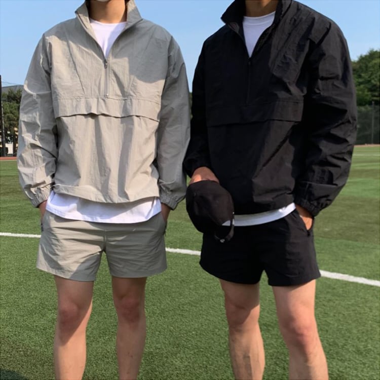 【韓国メンズファッション】ウィンドブレーカー×ショートパンツ セットアップ サマージャケット シンプル ユニセックス BW2203