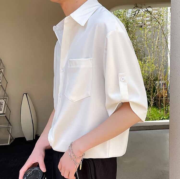 【韓国メンズファッション】袖ロールアップ5分袖シャツ きれいめ 大人コーデ シンプル ベーシック BW2225