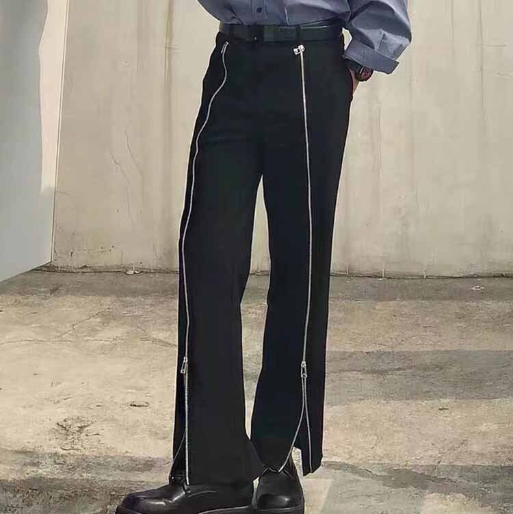 【韓国メンズファッション】フロントファスナーロングパンツ カジュアル 個性派 黒 BW2257