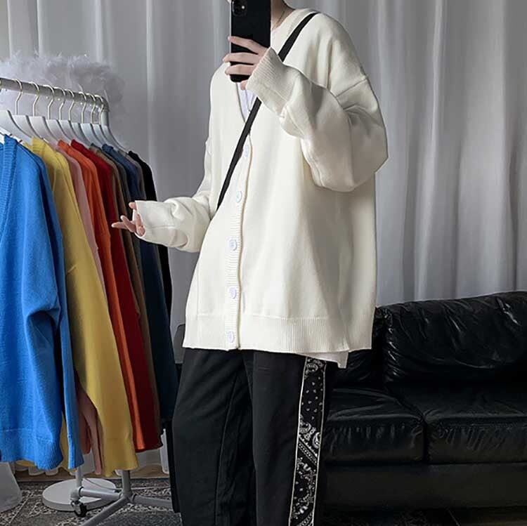 【韓国メンズファッション】ドロップショルダーVネックニットカーデ カジュアル ゆったり モノトーン BW2314