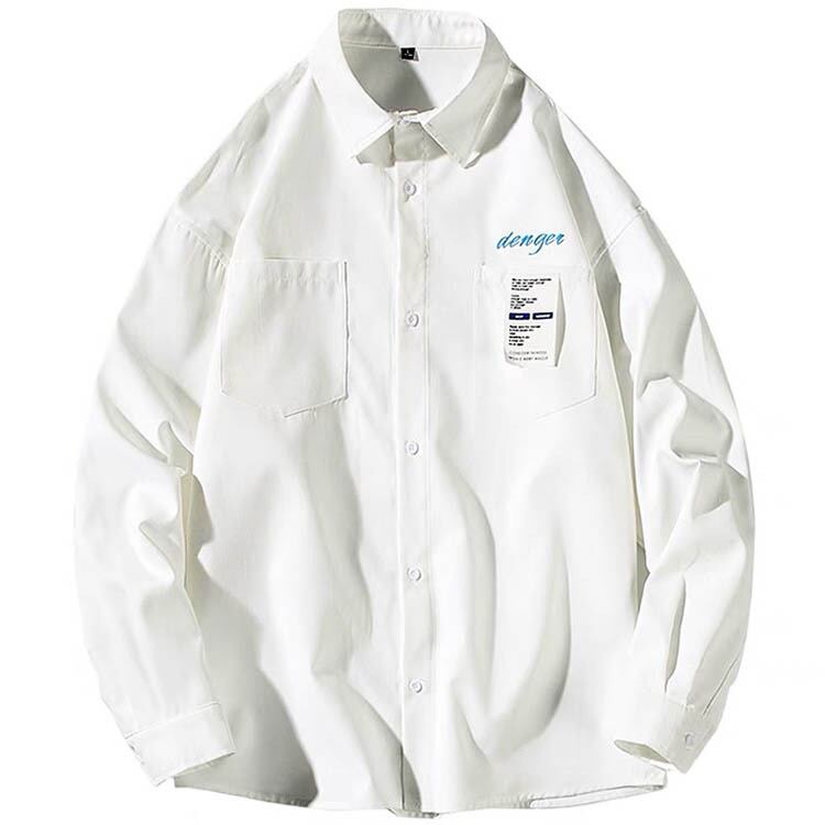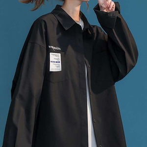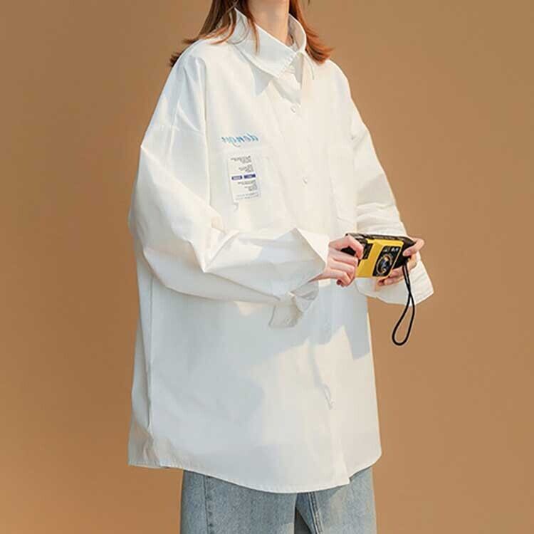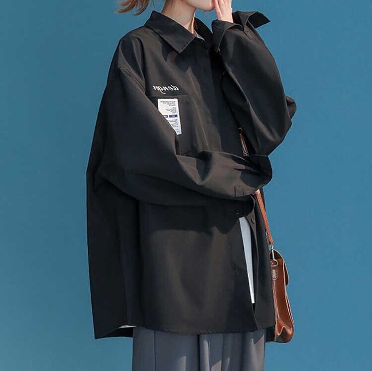 【韓国メンズファッション】胸ワッペン付きオーバーサイズシャツ カジュアル 長袖 ゆったり ユニセックス BW2218
