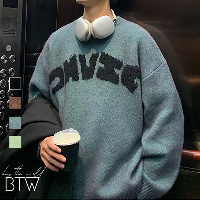 【韓国メンズファッション】ジャガードフロントロゴセーター クール シンプル 長袖 クルーネック あたたか BW2334
