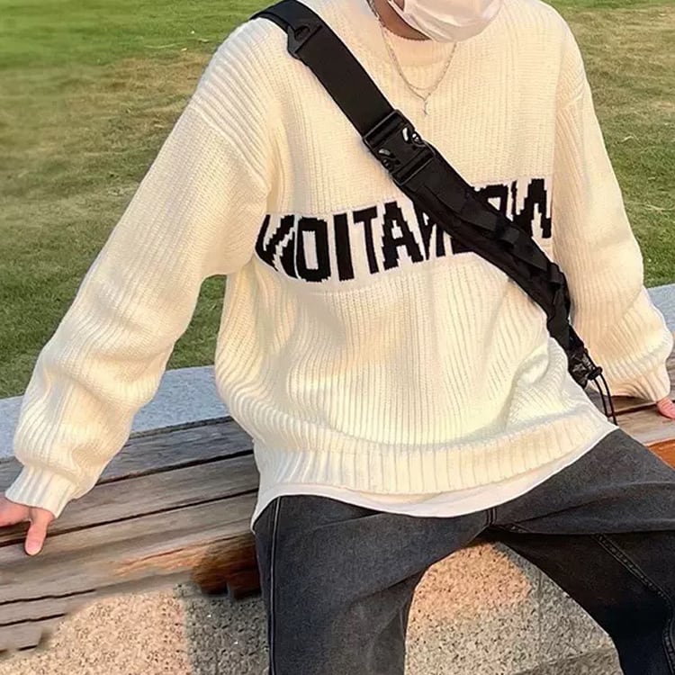 【韓国メンズファッション】フロントロゴローゲージセーター カジュアル シンプル ストリート 長袖 クルーネック BW2335