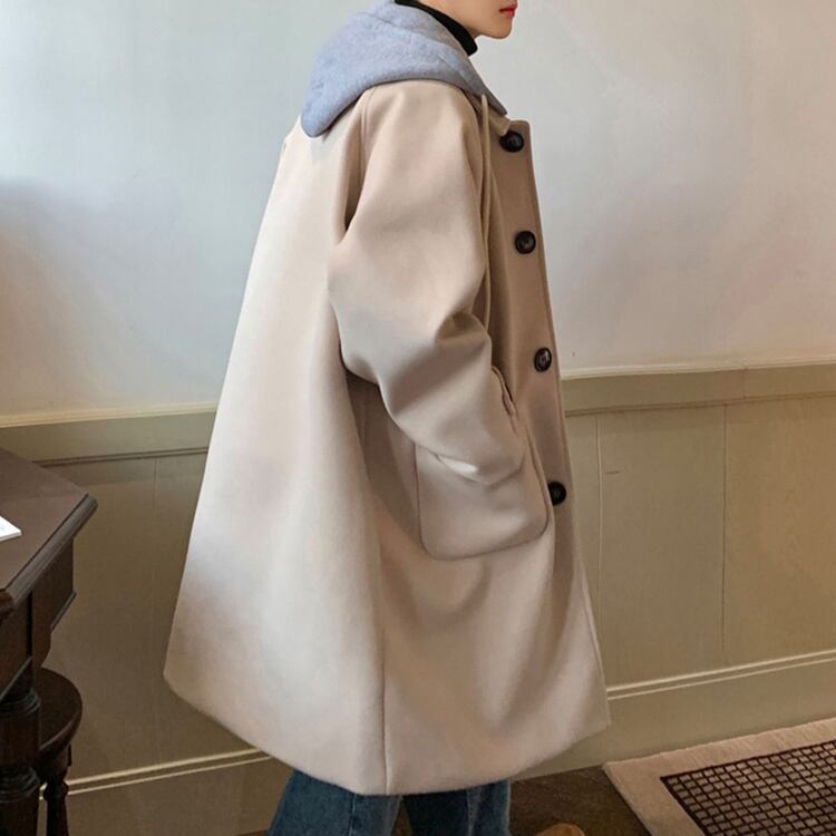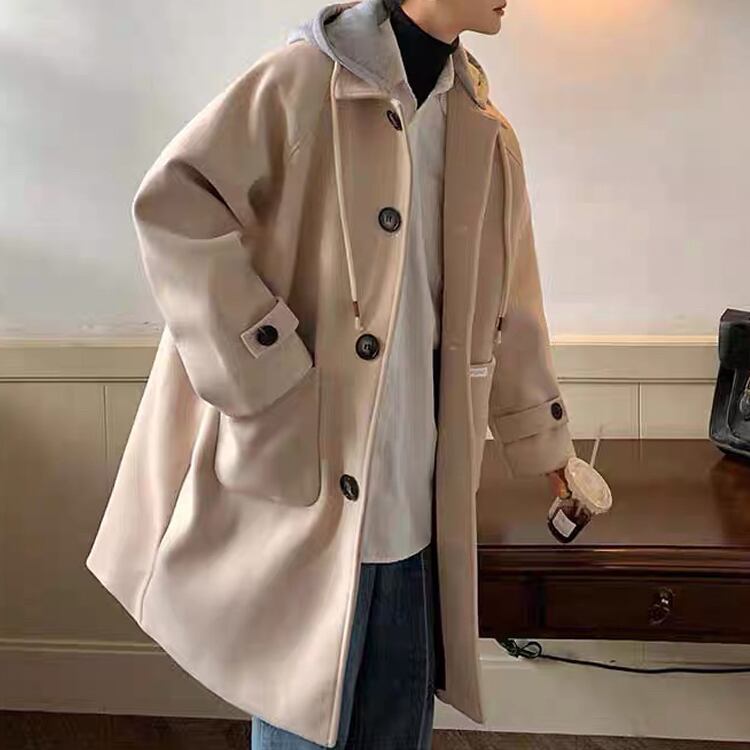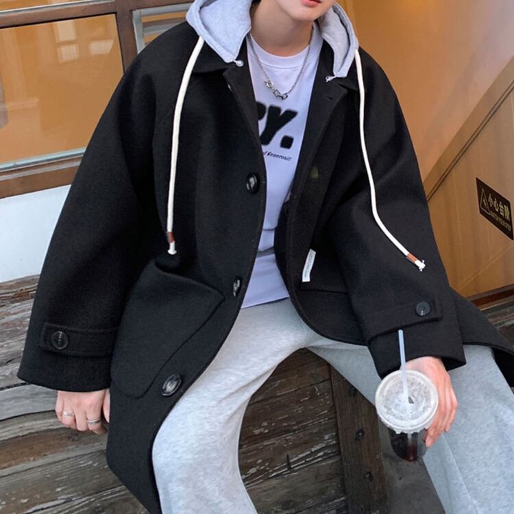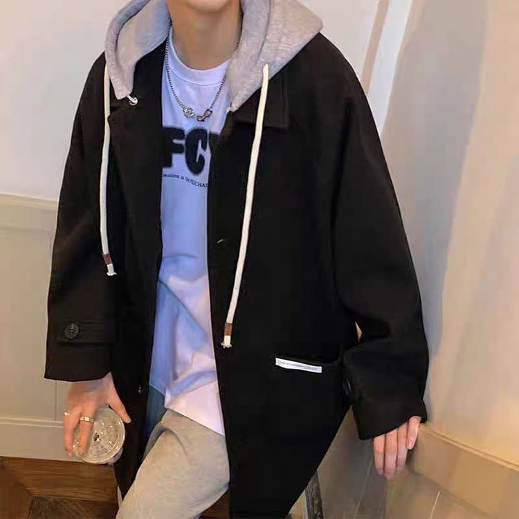 【韓国メンズファッション】異素材フード付きステンカラーコート カジュアル きれいめ 大人 アウター 秋冬 BW2357