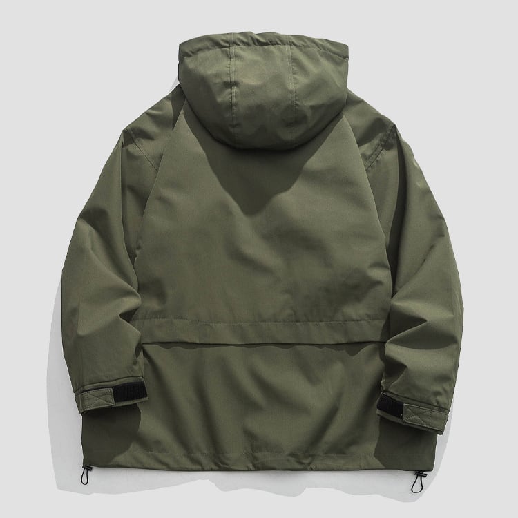 マウンテンパーカーに欠かせないフードやポケット、袖口と裾を締める機能はもちろん、