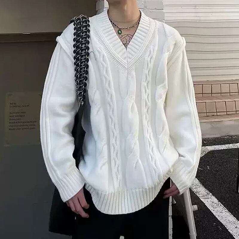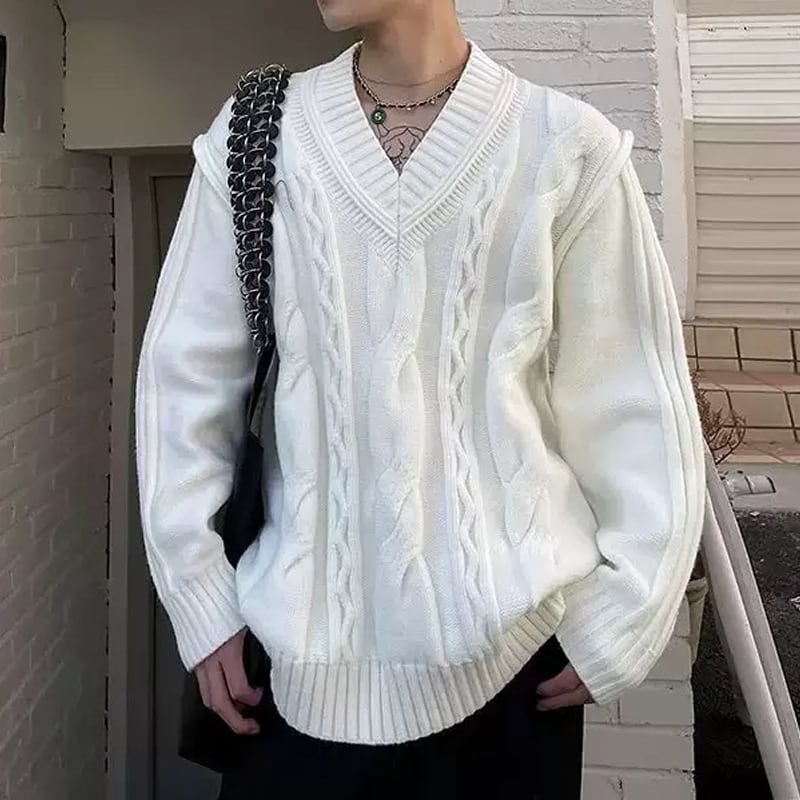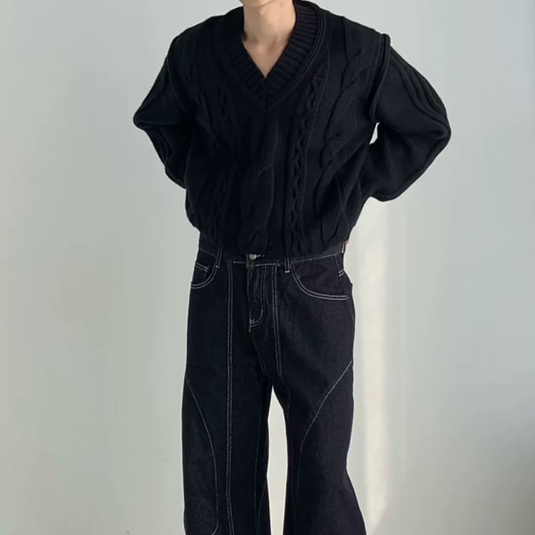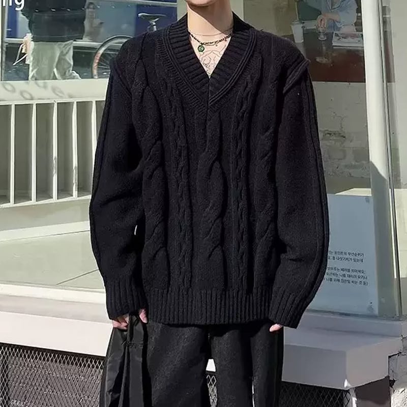 【韓国メンズファッション】ショルダーアクセント編みケーブルニットセーター クール カジュアル きれいめ 大人 Vネック BW2373