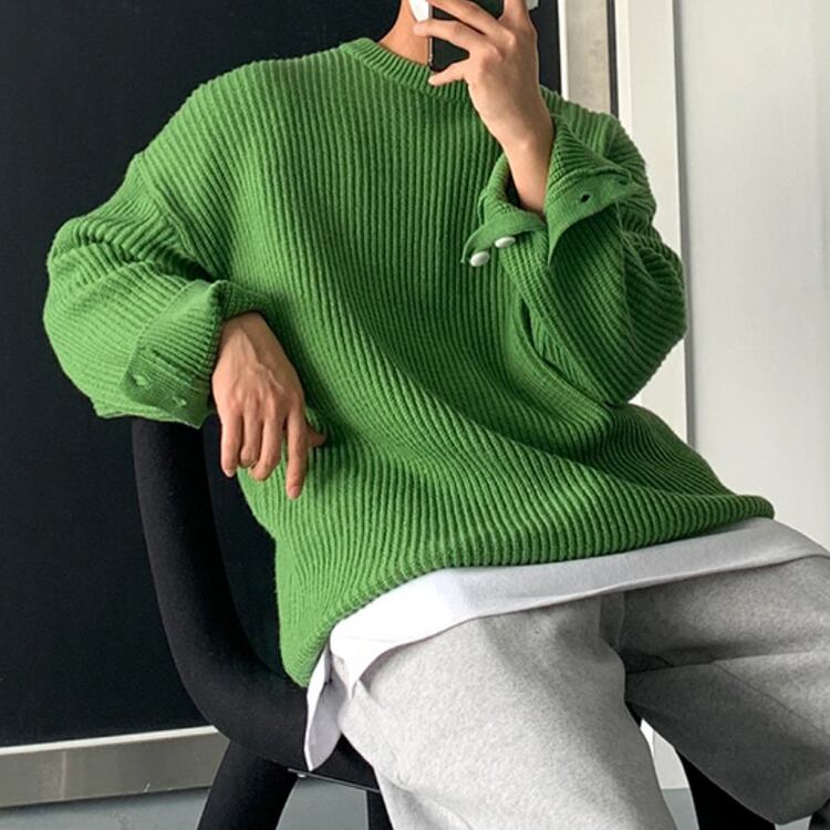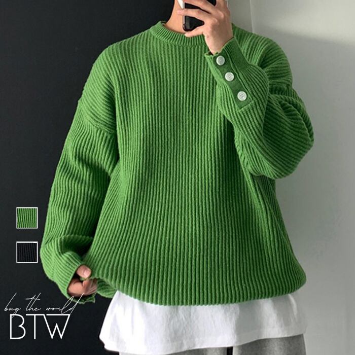 【韓国メンズファッション】カフスボタン付きリブ編みセーター シンプル カジュアル クール 大人 無地 BW2375