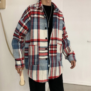 【韓国メンズファッション】マルチカラーネルシャツ アメカジ カジュアル レトロ ユニセックス ゆったり 大きいサイズ BW2378