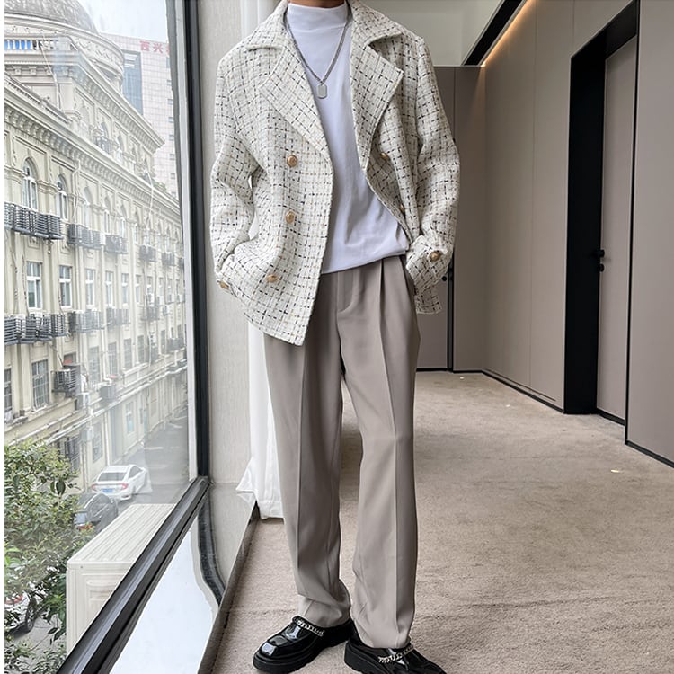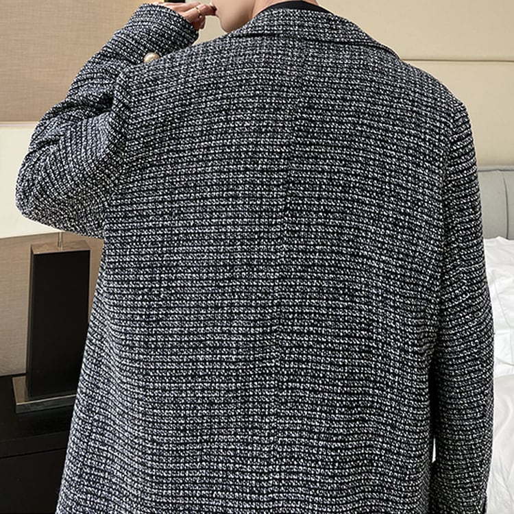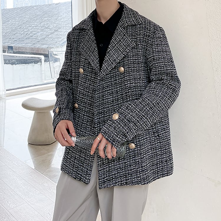 【韓国メンズファッション】ダブルブレストツイードジャケット 大人 きれいめ モノトーン 2列ボタン BW2385