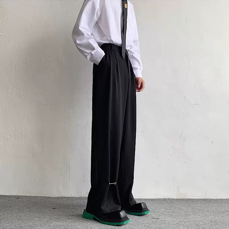 【韓国メンズファッション】アクセ付きスラックス きれいめ 個性派デザイン クール モード BW2418