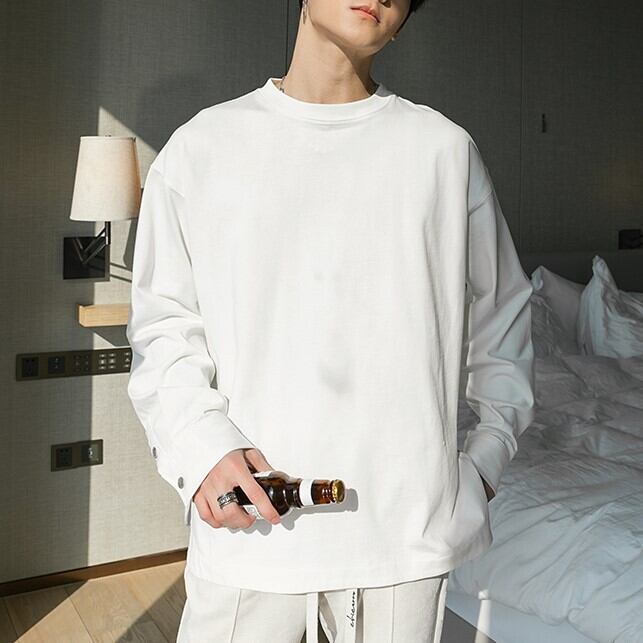 【韓国メンズファッション】スリットデザイン長袖Tシャツ シンプル ベーシック カジュアル BW2429