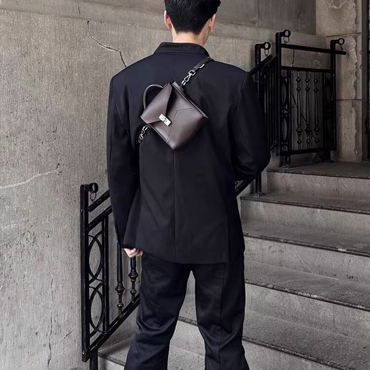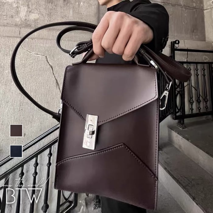 【韓国メンズファッション】アシンメトリーレザーミニバッグ クール ショルダーバッグ ハンドバッグ ユニセックス BW2444