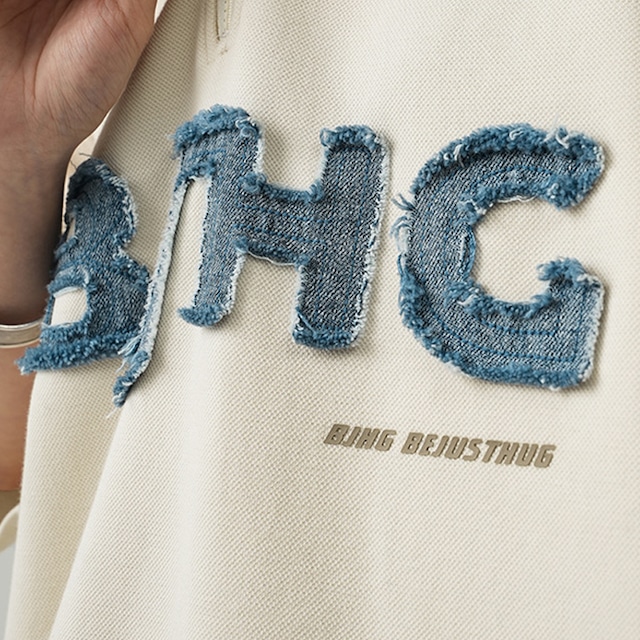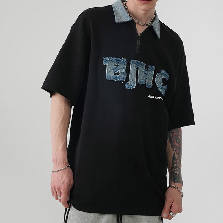 【韓国メンズファッション】デニムアクセント半袖ポロシャツ アメカジ ストリート ゆったり ユニセックス BW2486