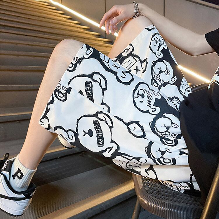 【韓国メンズファッション】クマプリントハーフパンツ イージーパンツ カジュアル ストリート ヒップホップ ラフ BW2490