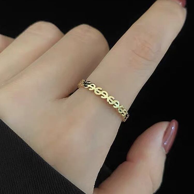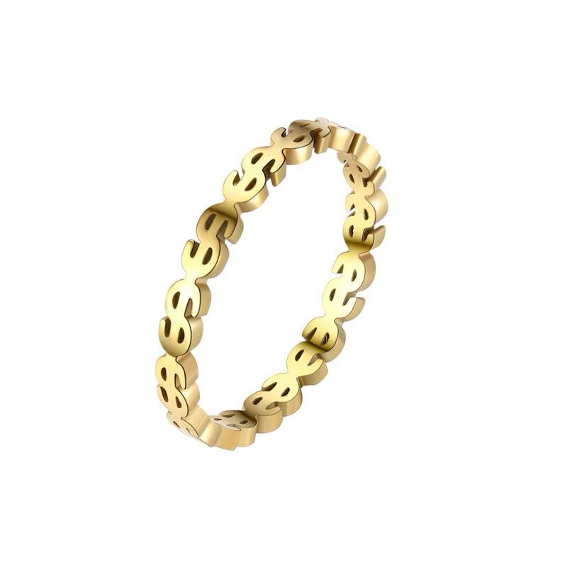 ドルマークを連ねた存在感のあるデザインがクールなリング。