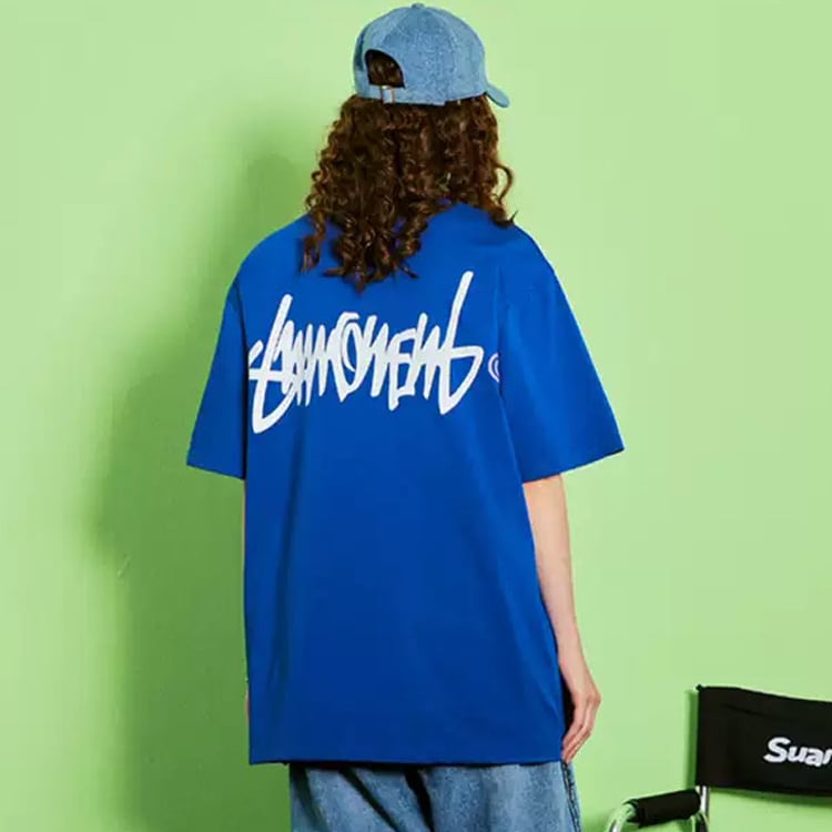【韓国メンズファッション】バックロゴプリントTシャツ クール シティ ゆったり ユニセックス カラバリ豊富 BW2522