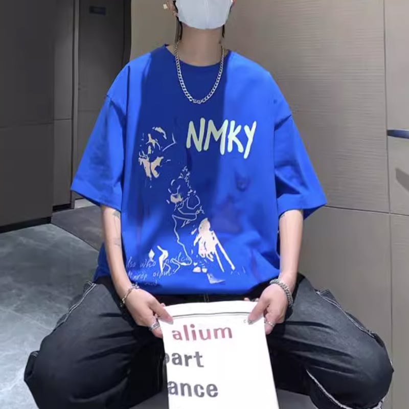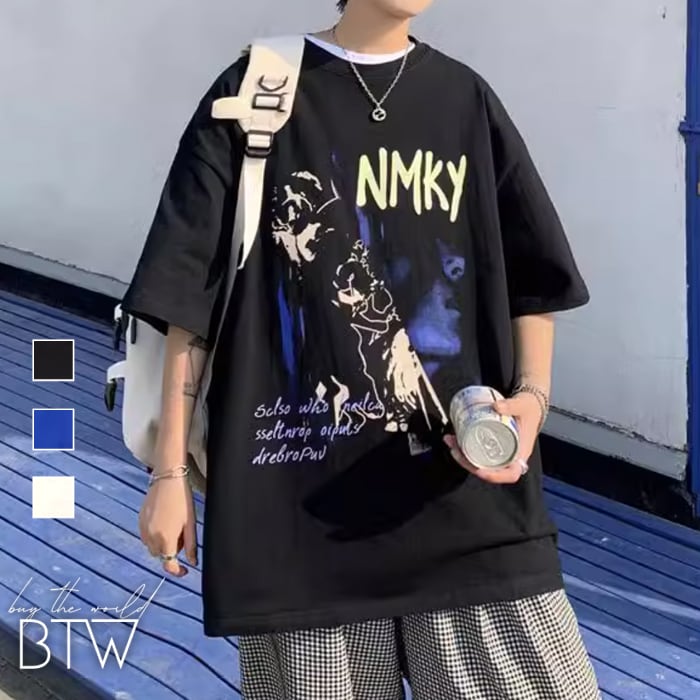 【韓国メンズファッション】フロントプリントTシャツ カジュアル ストリート ヒップホップ ゆったり ユニセックス BW2554