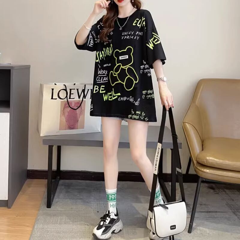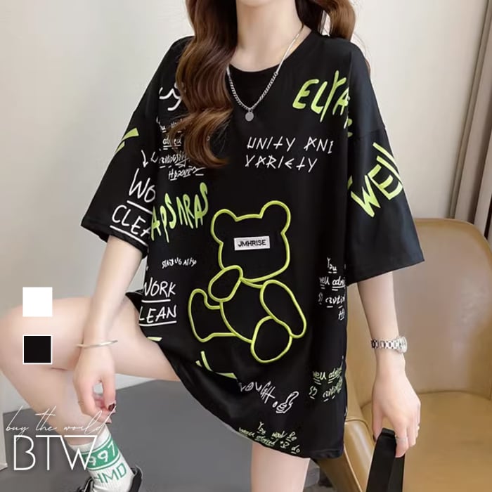 【韓国レディースファッション】ランダムロゴプリントTシャツ カジュアル ストリート クール スポーティ プチプラ BW2573