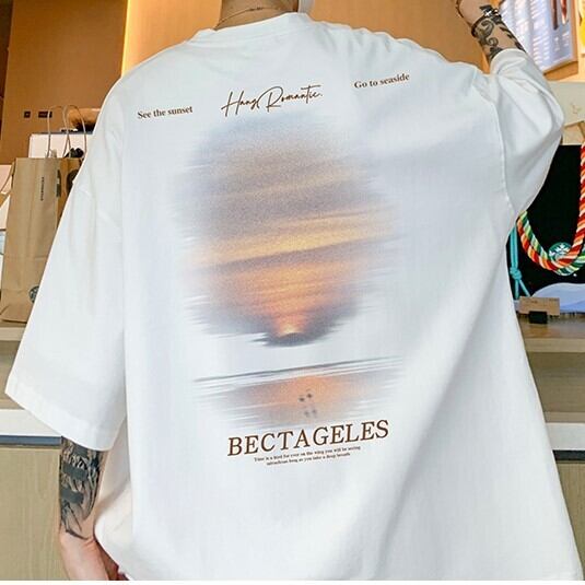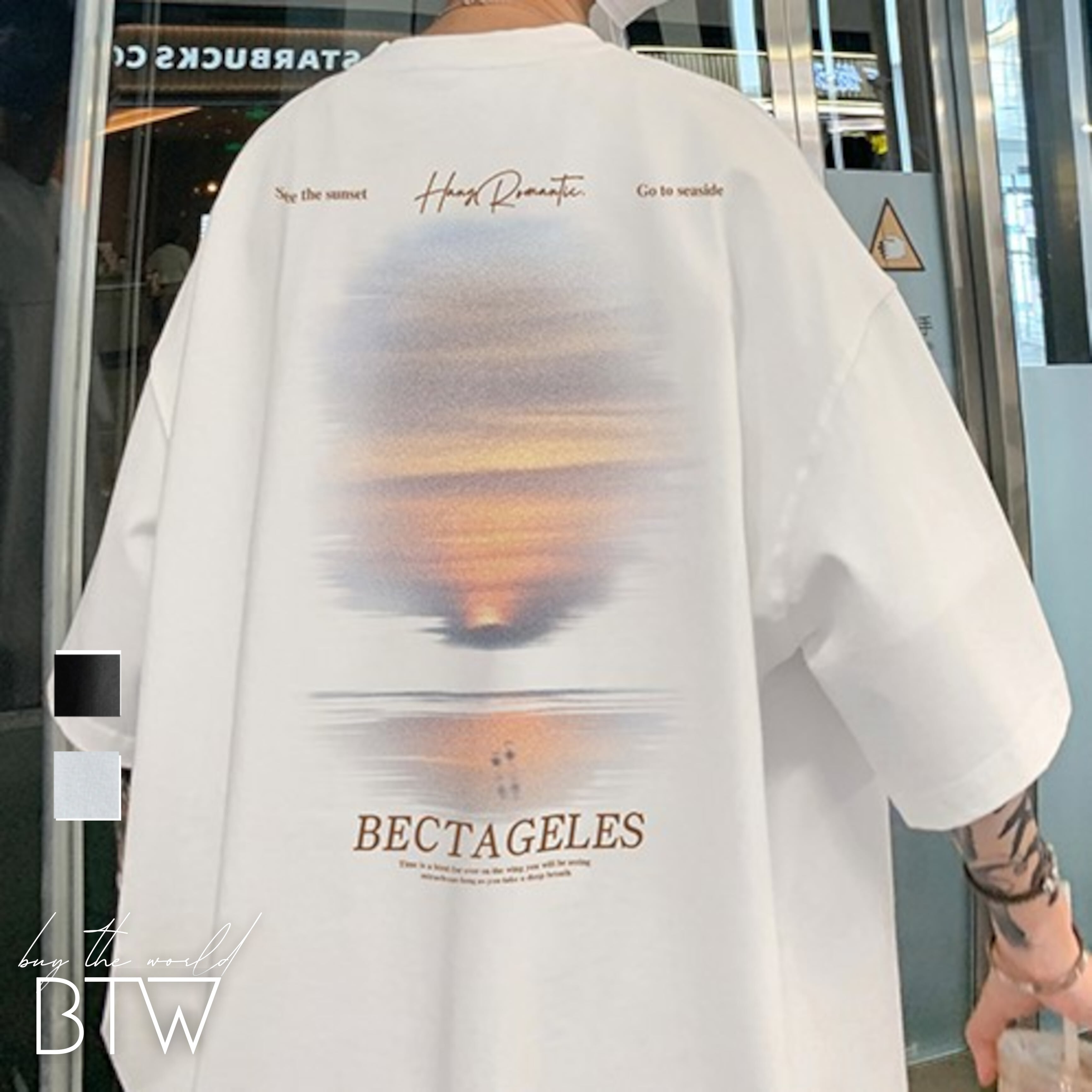 【韓国メンズファッション】バックフォトプリントTシャツ シンプル クール プチプラ ユニセックス サイズ豊富 BW2615