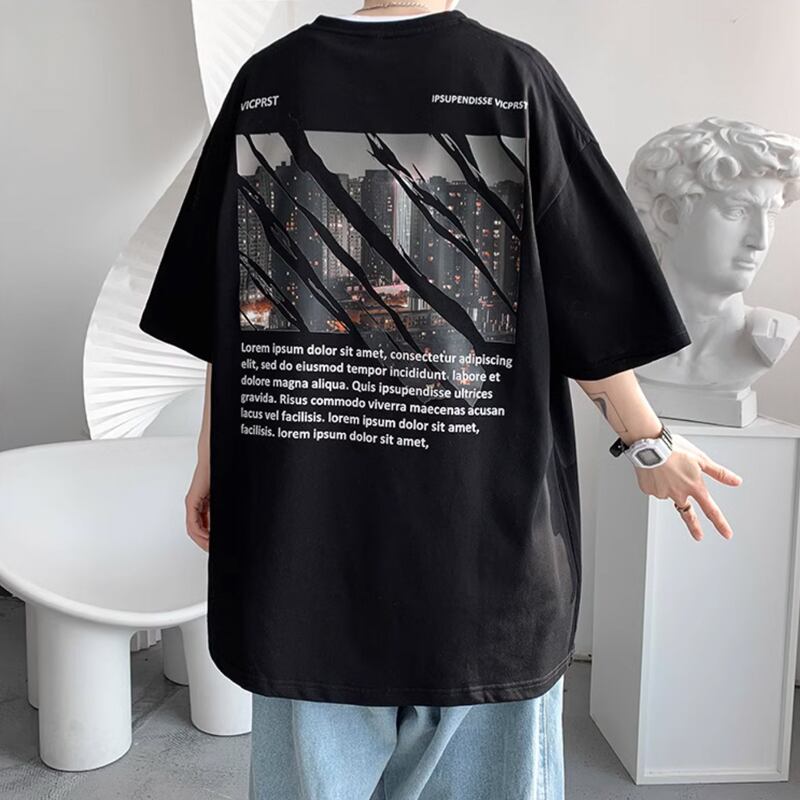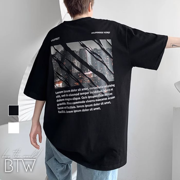 【韓国メンズファッション】バックプリント半袖Tシャツ シンプル カジュアル クール シティ ユニセックス サイズ豊富 BW2623