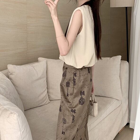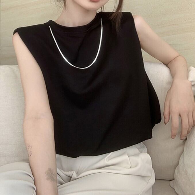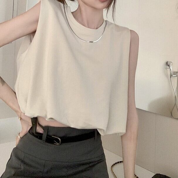 【韓国レディースファッション】チャームモチーフ スリーブレスTシャツ 大人可愛い きれいめ ナチュラル カジュアル 夏 BW2676