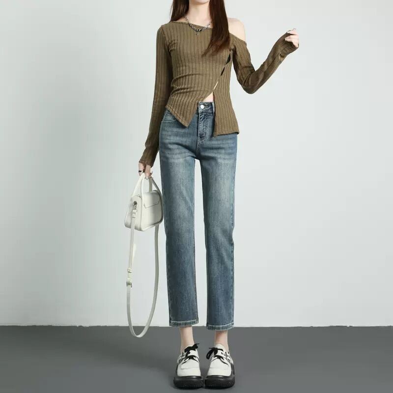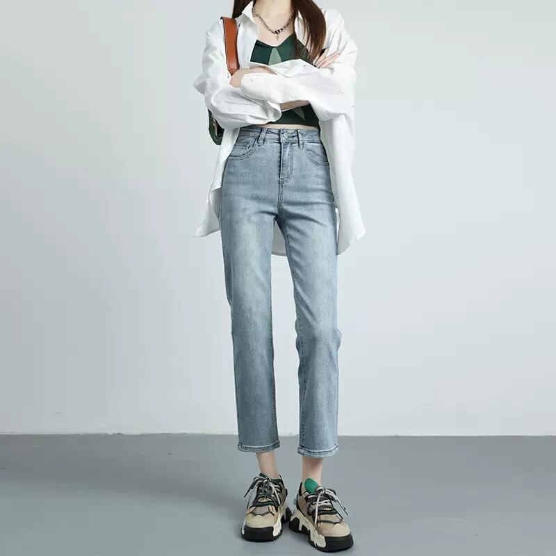【韓国レディースファッション】ハイウエスト ストレート ジーンズ クール カジュアル ラフ ベルト 着回し BW2721