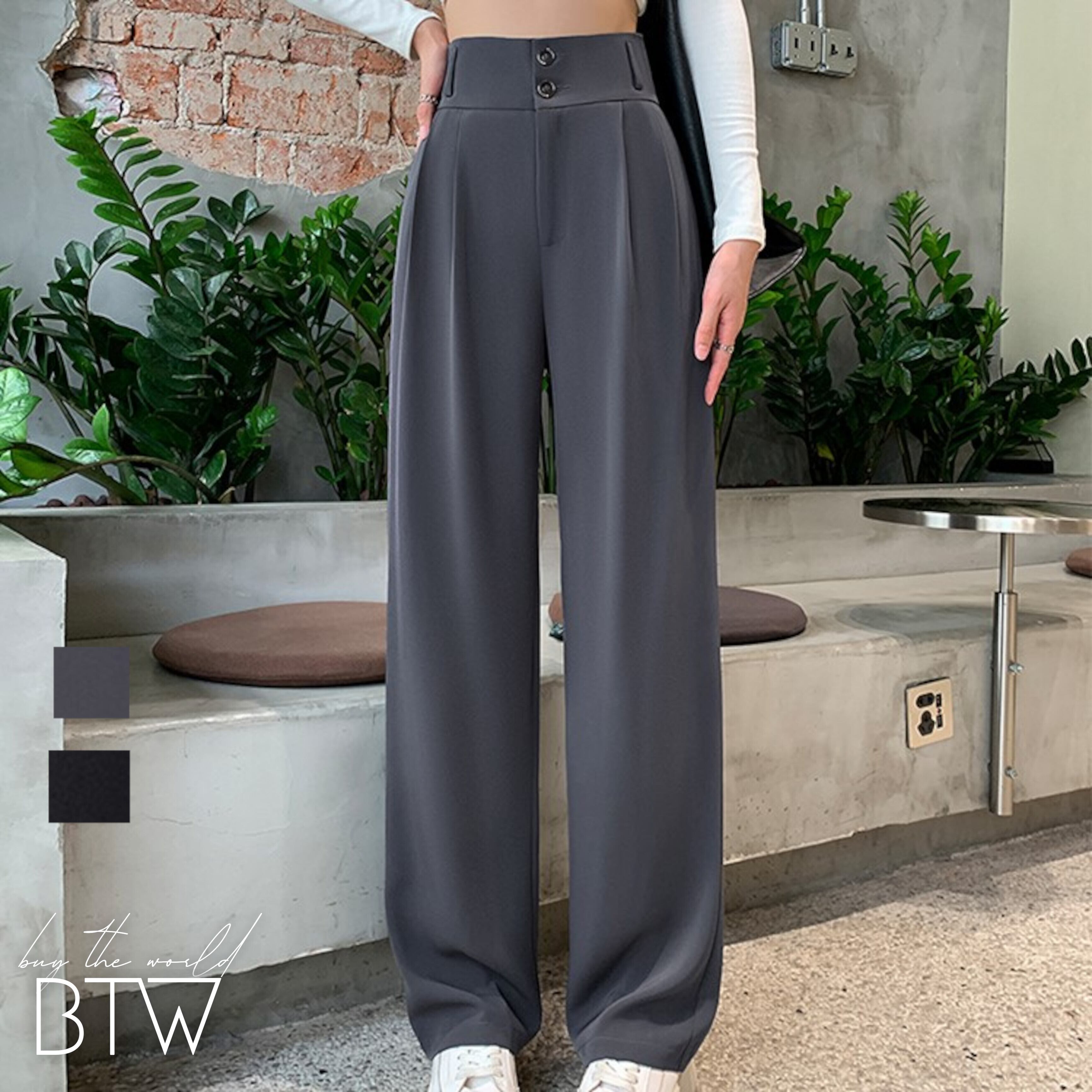 【韓国レディースファッション】ワイドレッグ美ラインパンツ クール カジュアル ラフ オフィス 着回し BW2724