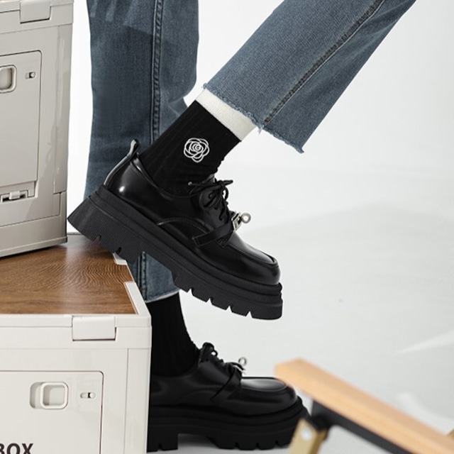 【韓国レディースファッション】レースアッププラットフォームローファー カジュアル 厚底 クラシカル BW2733
