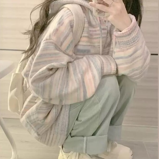 【韓国レディースファッション】オーロラニット ジップパーカー カジュアル 大人可愛い 秋冬 BW2737